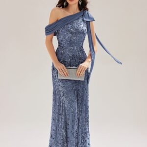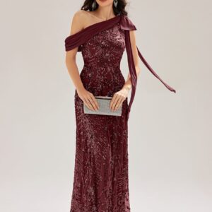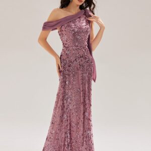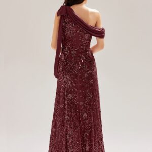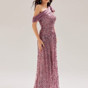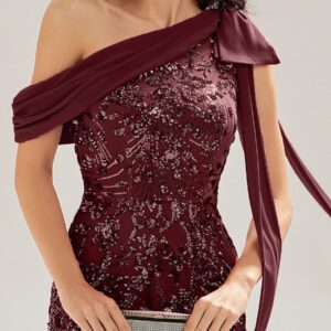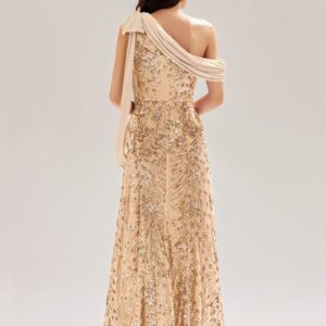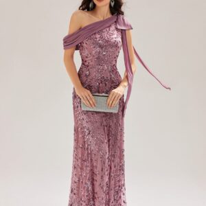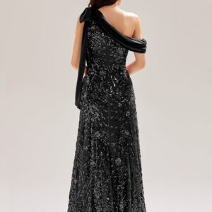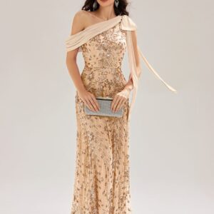Make a dazzling entrance in our Bow Detail Sequin Drop Shoulder Sleeve Evening Dress! This stunning piece features a chic drop shoulder design adorned with shimmering sequins, creating a captivating sparkle. The elegant bow detail adds a touch of sophistication, making it perfect for formal events and evening soir¨¦es.