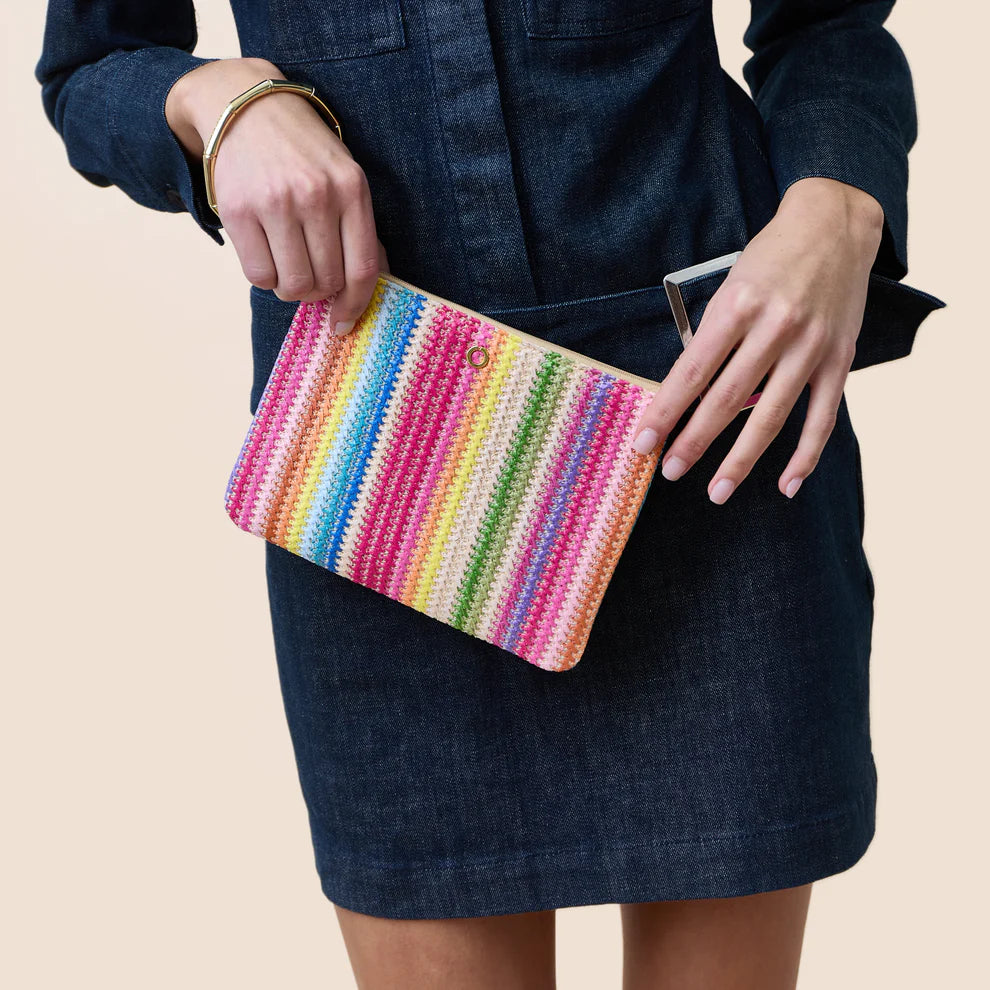 This versatile raffia clutch bag with jewelry quality hardware will be your go-to accessory for every occasion whether you’re heading out for brunch, errands or a night on the town. Say goodbye to bulky handbags and inconvenient clutch bags and hello to the innovative design of Oventure’s handsfree bracelet pouch.
