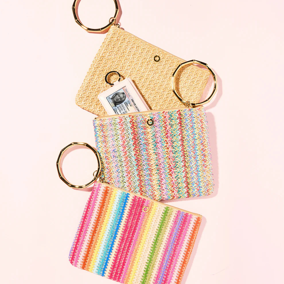 Carry your essentials in style with our chic Raffia Bracelet Pouch. This stylish wristlet features a bamboo bangle zip closure and is designed to hold all your essentials while keeping you hands-free wherever you go.