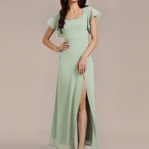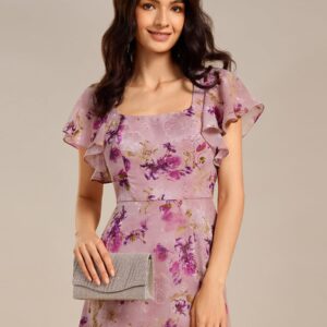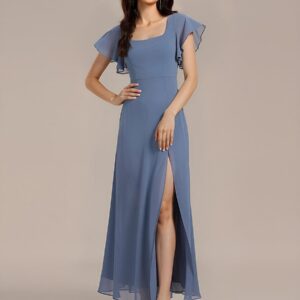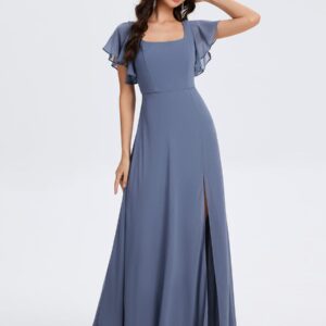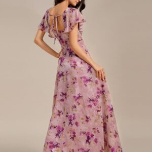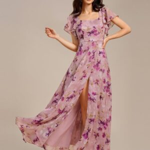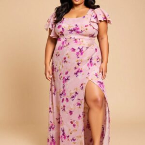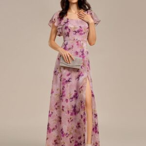 Embrace effortless elegance with this stunning maxi dress, featuring playful flutter sleeves and a captivating floral print. The side split adds a touch of allure, perfect for swaying as you walk. Crafted from lightweight fabric, it ensures comfort while maintaining a sophisticated silhouette. Ideal for formal events, this dress pairs beautifully with heels and statement accessories for a polished look.