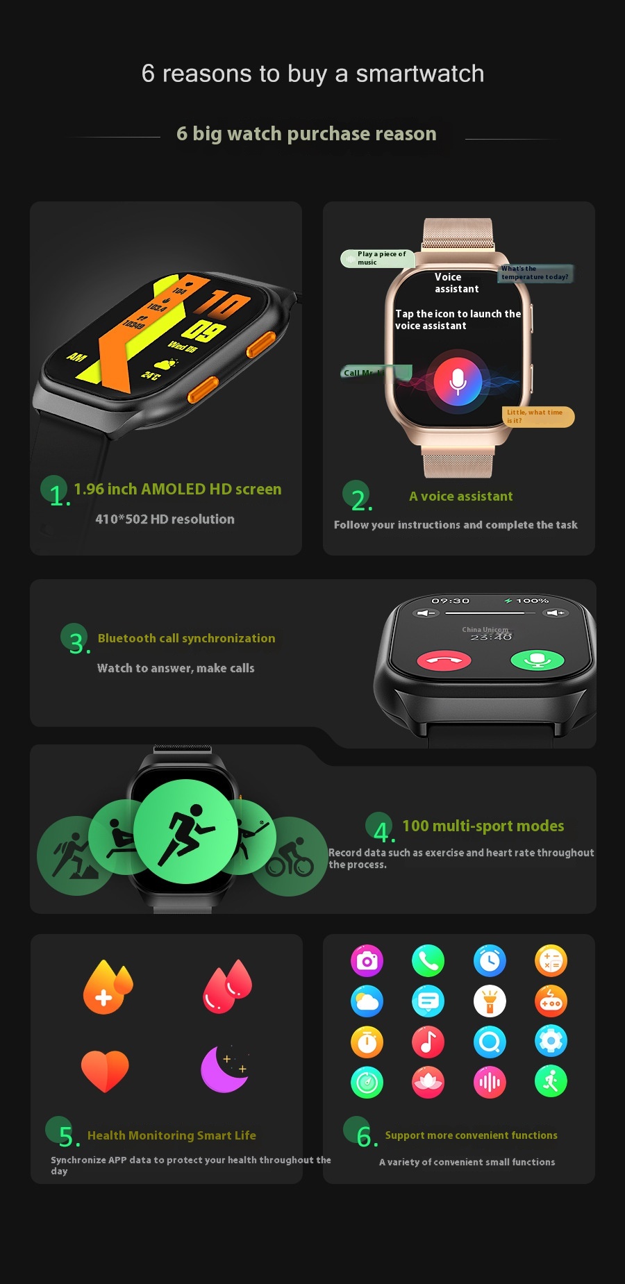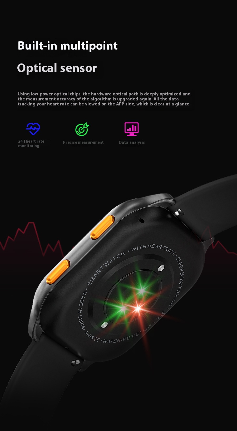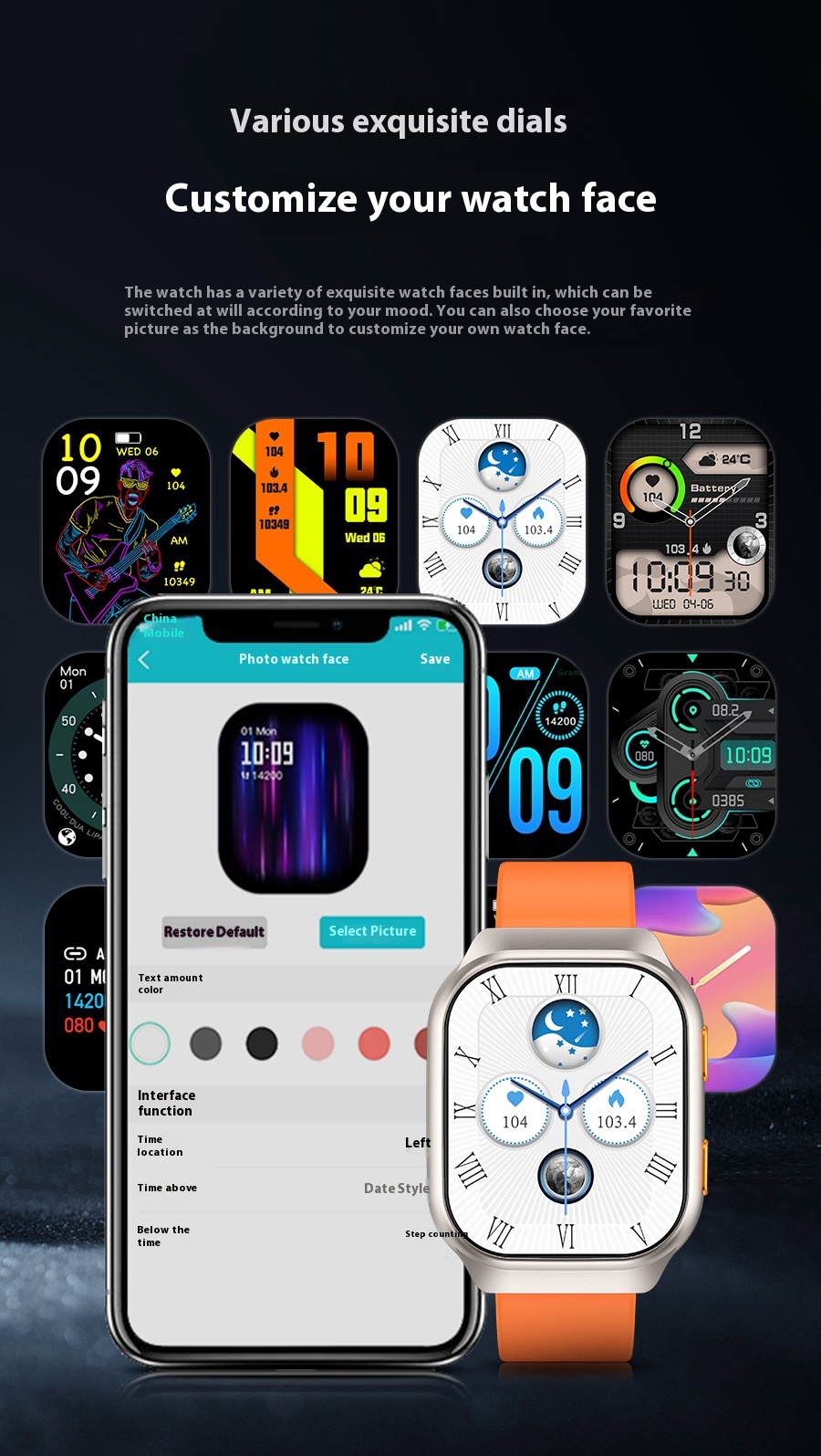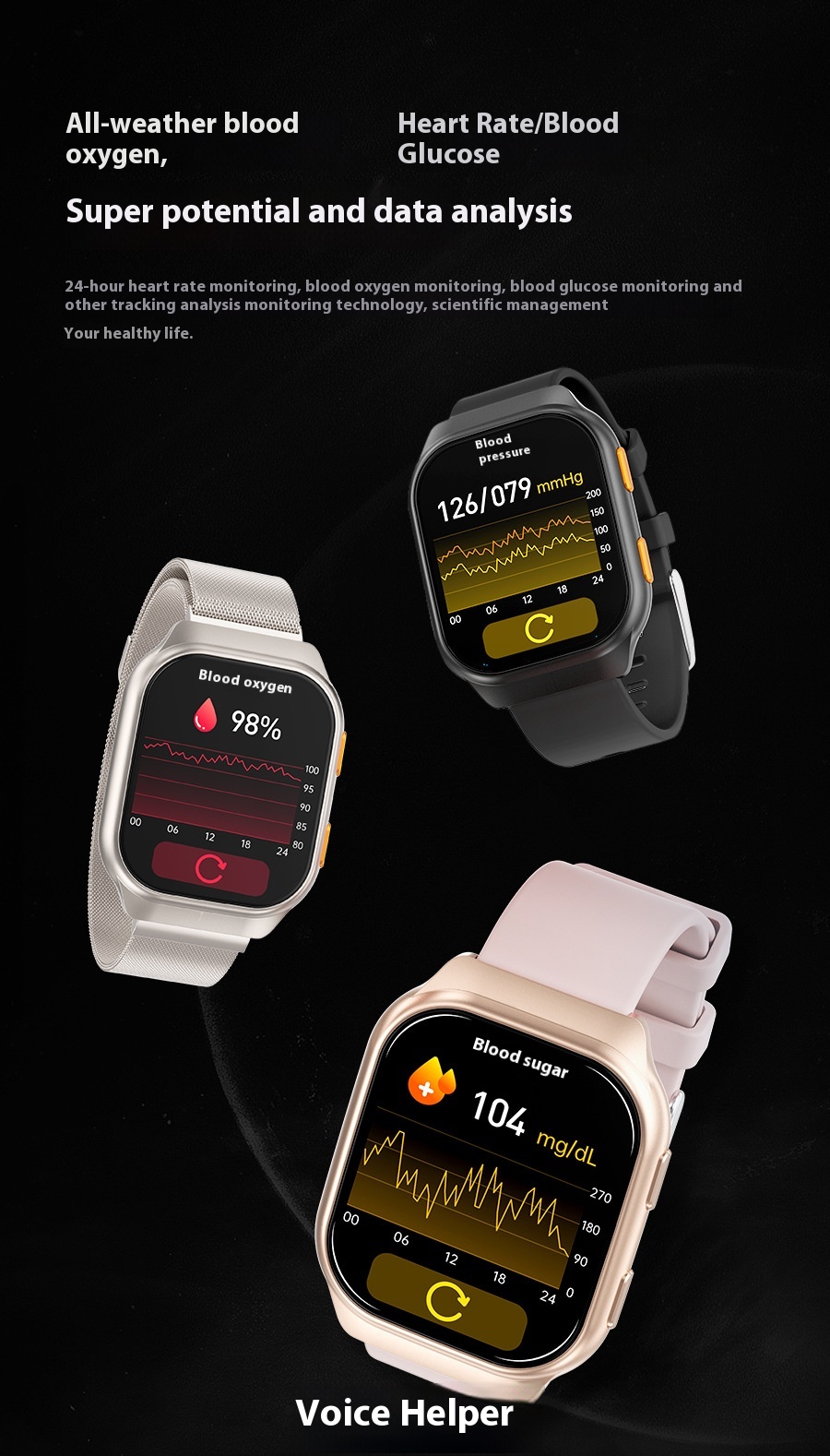 Functions: Waterproof, photo taking, step counting, heart rate monitoring, blood pressure measurement, social entertainment, Bluetooth call, smart reminder, remote control selfie, sleep monitoring, blood oxygen detection