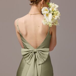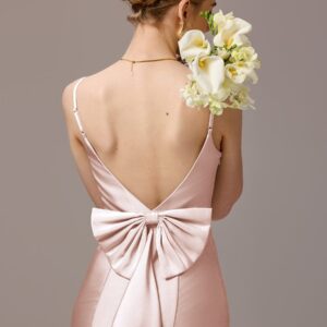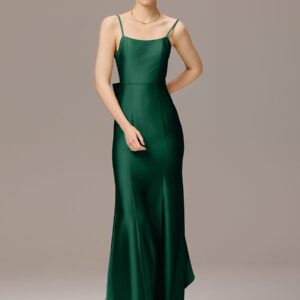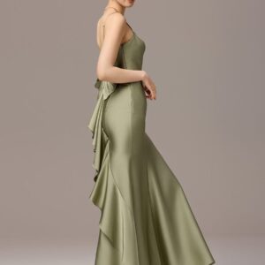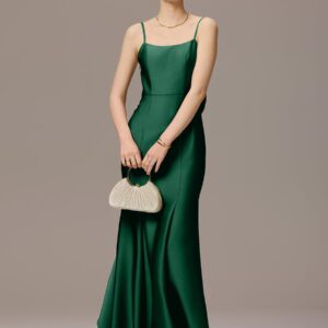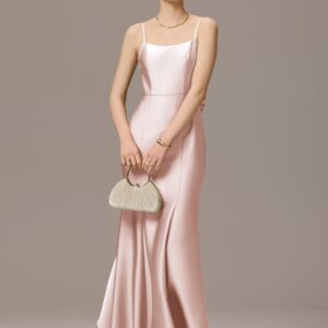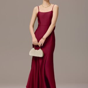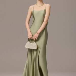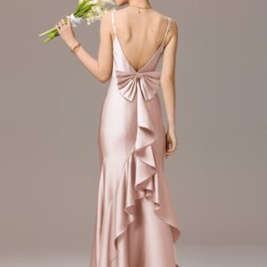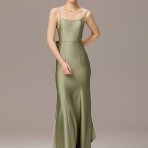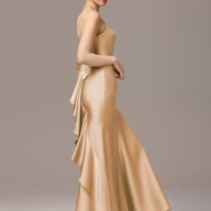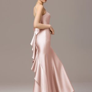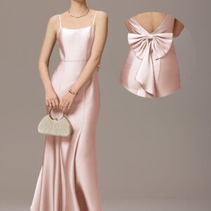 Sleek and sophisticated, this stretch satin mermaid bridesmaid dress hugs your curves for a stunning silhouette. The elegant bow detail adds a touch of charm, while the fitted bodice flows into a graceful flared hem. Designed for comfort and style, this maxi dress is perfect for weddings, galas, and formal occasions.
