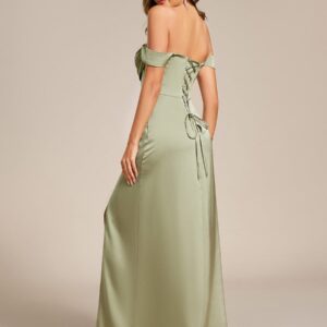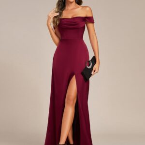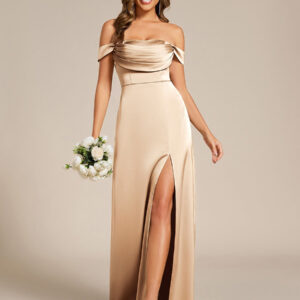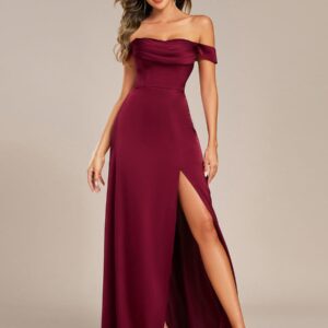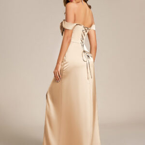 Elevate your special occasion in our Off Shoulder Short Sleeve Split Back-Tie Satin Bridesmaid Dresses! This stunning gown features a flattering off-the-shoulder design that highlights your neckline and shoulders, while the short sleeves add a touch of elegance. Crafted from premium bandage fabric, it hugs your curves in all the right places, creating a show-stopping silhouette. The daring split adds a playful hint of allure, making every step you take a head-turner. Perfect for weddings, formal events, or any celebration where you want to shine, this dress is your go-to choice for timeless beauty and sophistication.