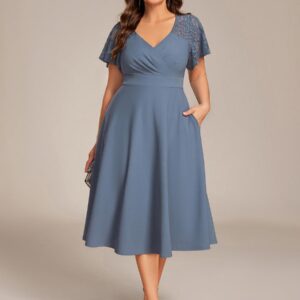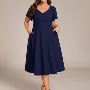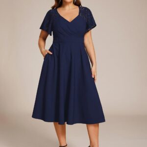 This stunning A-line pleated midi dress is perfect for wedding guests seeking both style and comfort. Designed with plus-size figures in mind, it features soft pleats, a flattering silhouette, and delicate lace sleeves that add a romantic touch. Finished with convenient pockets and luxe fabric, it’s ideal for any special occasion.