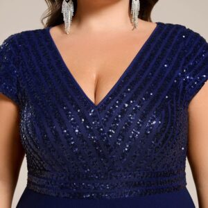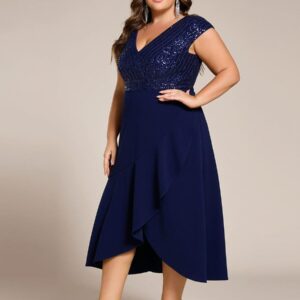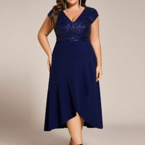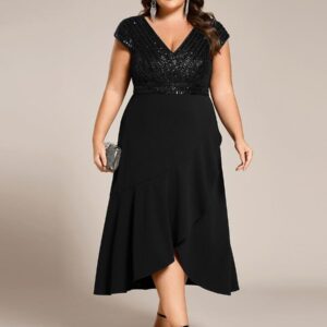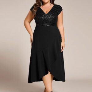 Be the first to review “Plus Size Sequin Bodice V-Neck Midi Formal Dress”