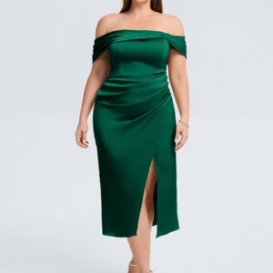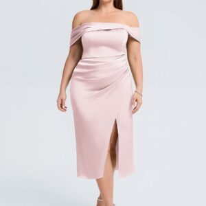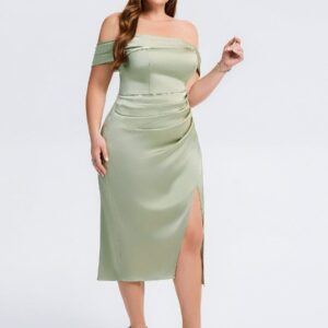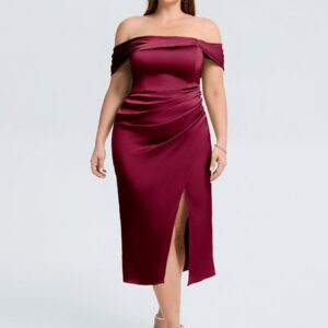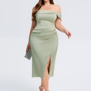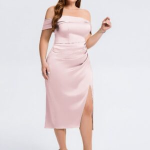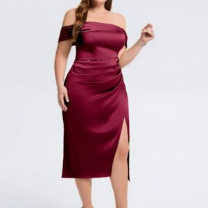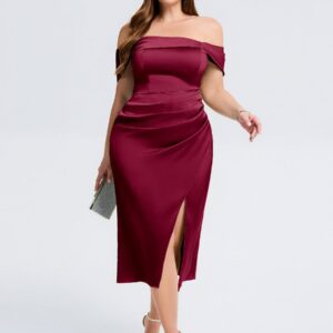 Elevate your wedding guest look with our Plus Size Slit Satin Wedding Guest Dress! This stunning gown features a luxurious satin finish, a flattering silhouette, and a daring side slit that adds a touch of allure. Perfect for dancing the night away or making a statement at any celebration!