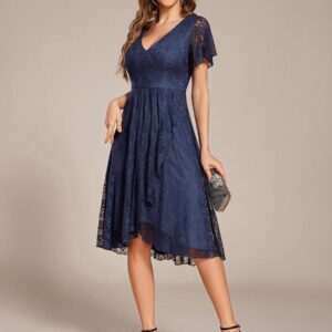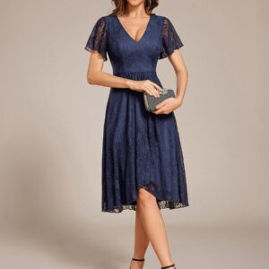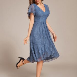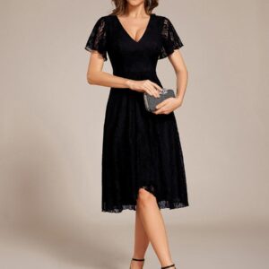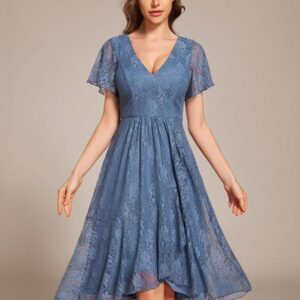 Step into elegance with our Ruffled Short Sleeves V-Neck A-Line Low Stretch Wedding Guest Dress! This stunning piece features delicate ruffled sleeves that add a touch of romance, while the flattering V-neckline enhances your silhouette. The A-line shape flows beautifully, providing comfort and style as you celebrate love at any wedding. Crafted from low-stretch fabric, this dress ensures a graceful fit without compromising on ease of movement.