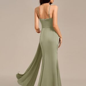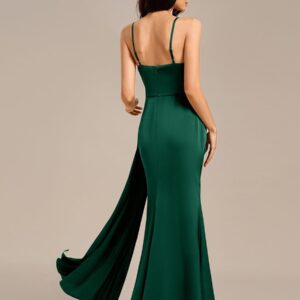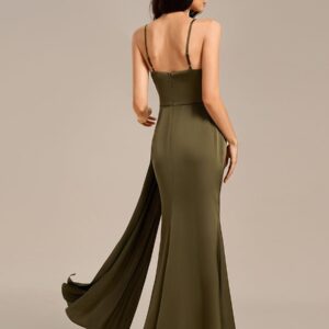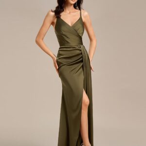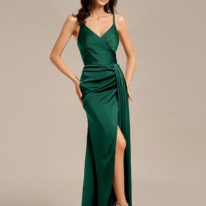 This stunning maxi dress features delicate spaghetti straps and a flattering mermaid silhouette, perfect for bridesmaids. Crafted from luxurious satin, it offers both elegance and comfort. The eye-catching side split adds a dramatic flair, allowing for freedom of movement. Ideal for weddings and formal events, this dress pairs beautifully with trendy accessories for a sophisticated look.