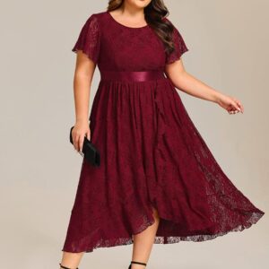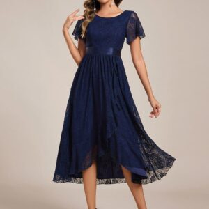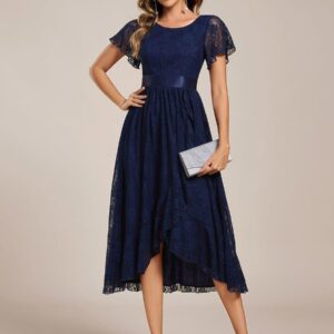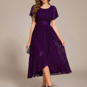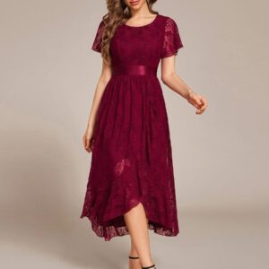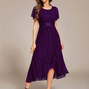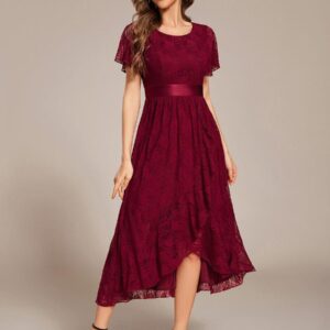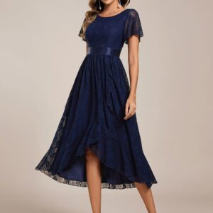Elevate your evening look with this stunning Short Sleeve Ruffled Empire Waist Asymmetrical Midi Formal Evening Dress! Designed to flatter, the empire waist creates a beautiful silhouette while the ruffled short sleeves add a touch of playful elegance. The asymmetrical hemline brings a modern twist, making it perfect for any formal occasion, from weddings to galas. Crafted from luxurious fabric, this dress drapes effortlessly, ensuring you feel as good as you look.