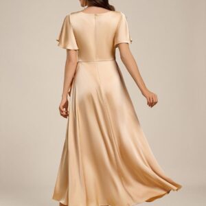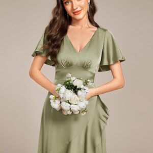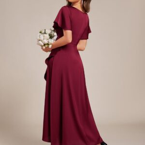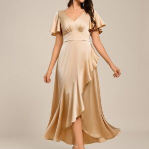 Step into elegance with our Short Sleeve Ruffled V-Neck Asymmetrical Midi Wedding Guest Dress! The flattering V-neckline accentuates your collarbone, while the asymmetrical hemline adds a modern twist to a classic silhouette. Perfect for any wedding or special occasion, this dress combines comfort and style, ensuring you¡¯ll shine as you celebrate love with your besties. Available in a variety of colors, it¡¯s the ideal choice for guests who want to embrace their individuality while looking effortlessly chic!