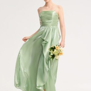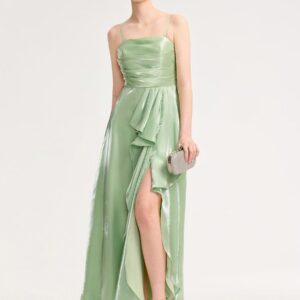 Elevate your evening style with this stunning green satin dress. Featuring a flattering silhouette, delicate spaghetti straps, and an elegant front slit, it offers both sophistication and comfort. The iridescent fabric catches the light beautifully, making it perfect for formal events or special occasions. Pair it with your favorite accessories for a complete look.