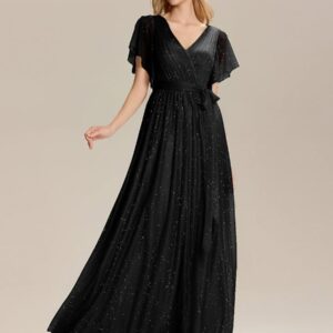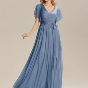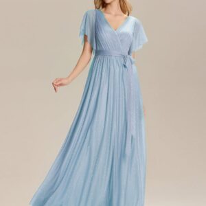 Be the first to review “Tie-Waist Ruffle Sleeve Maxi Bridesmaid Dress”