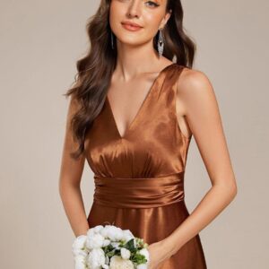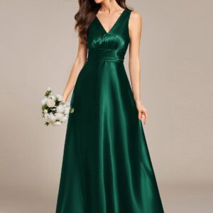Feel radiant in this timeless satin maxi dress that flatters every bridesmaid. The ruched bodice flows into an empire waist, creating a stunning silhouette that photographs beautifully. The sleeveless design is perfect for summer weddings, while the premium satin fabric ensures comfort from ceremony to last dance. Available in a range of colors to match any wedding palette.